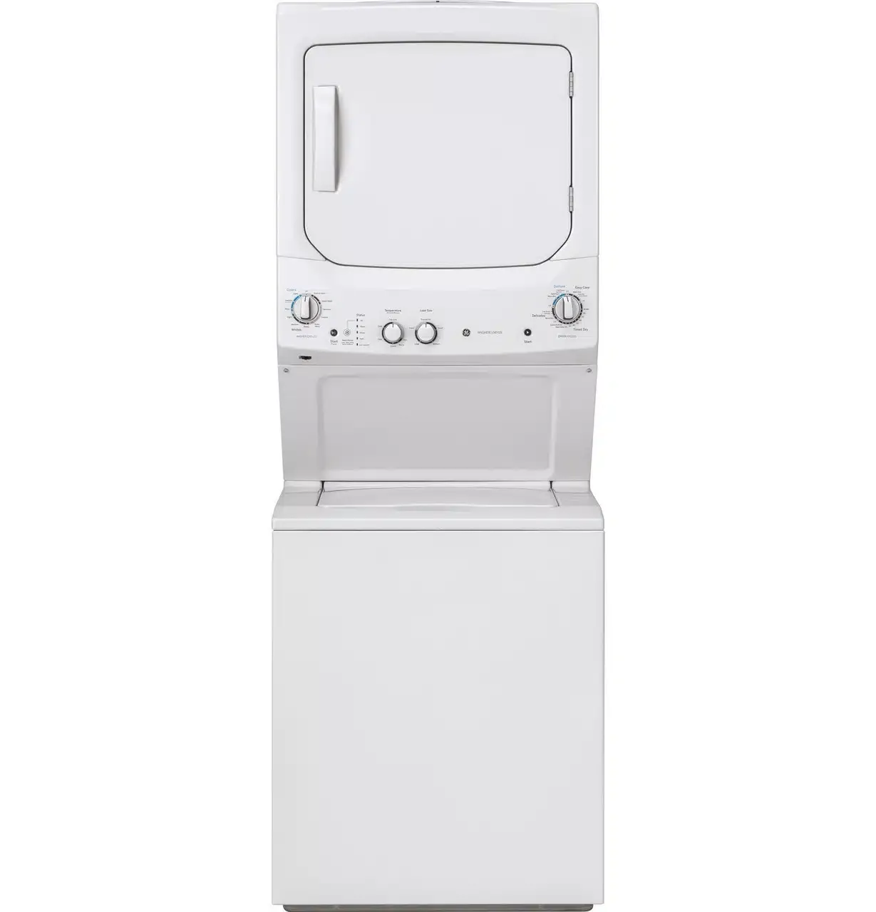 GE Unitized Spacemaker® 3.8 cu. ft. Capacity Washer with Stainless Steel Basket and 5.9 cu. ft. Capacity Electric Dryer Model #: GUD27ESSMWW