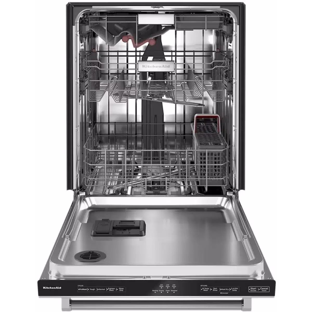 Fall in love at first wash with this top control dishwasher’s MaxTub largest dishwasher tub,* over 50 total wash jets and true self-cleaning filtration that eliminates pre-rinsing and manual filter cleaning. The only third rack with 360° wash jets fits 10 extra glasses and mugs,** freeing up space for larger items below.*Based on usable volume. **Compared to KDTE204K and KDFE204K models.