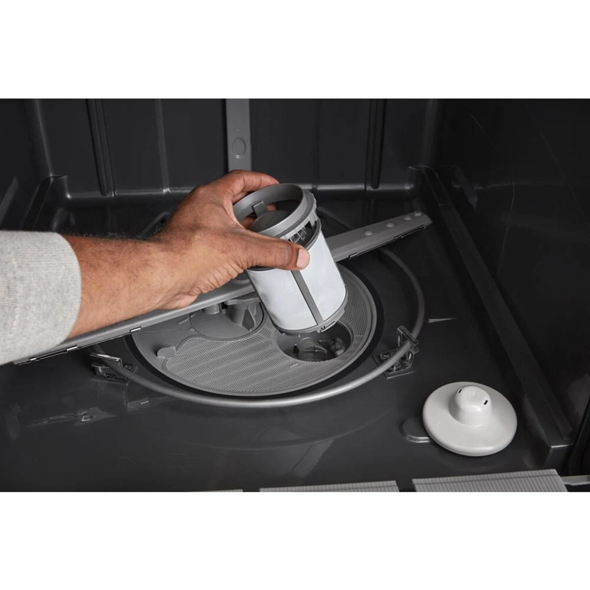• Keep dishes clear of rinsed food particles with a Triple Filtration Wash System that uses a coarse filter to catch large soils, a fine filter to catch medium soils and a micro-fine filter to catch small soils between wash stages.