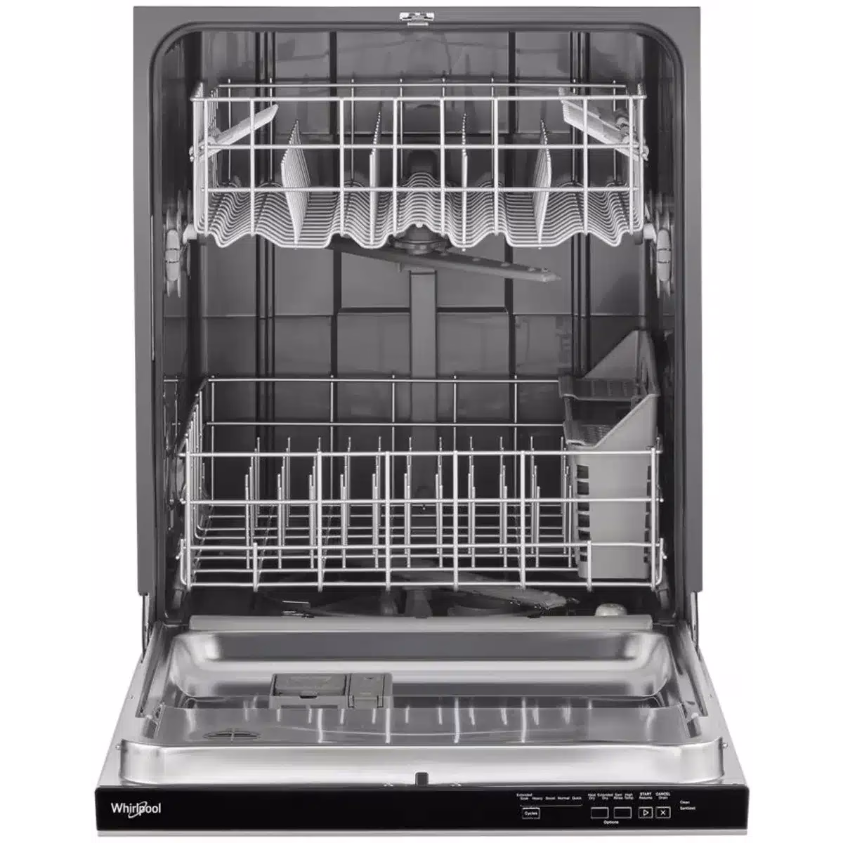 Clean dishes with a 55 dBA quiet dishwasher. Three 5″ Cup Shelves free up extra space and a Boost Cycle provides extra effort for cleaning up stubborn messes. This dishwasher includes an Extended Dry Option to elevate drying performance and a Triple Filtration Wash System that filters food particles and cleans the water between wash stages.