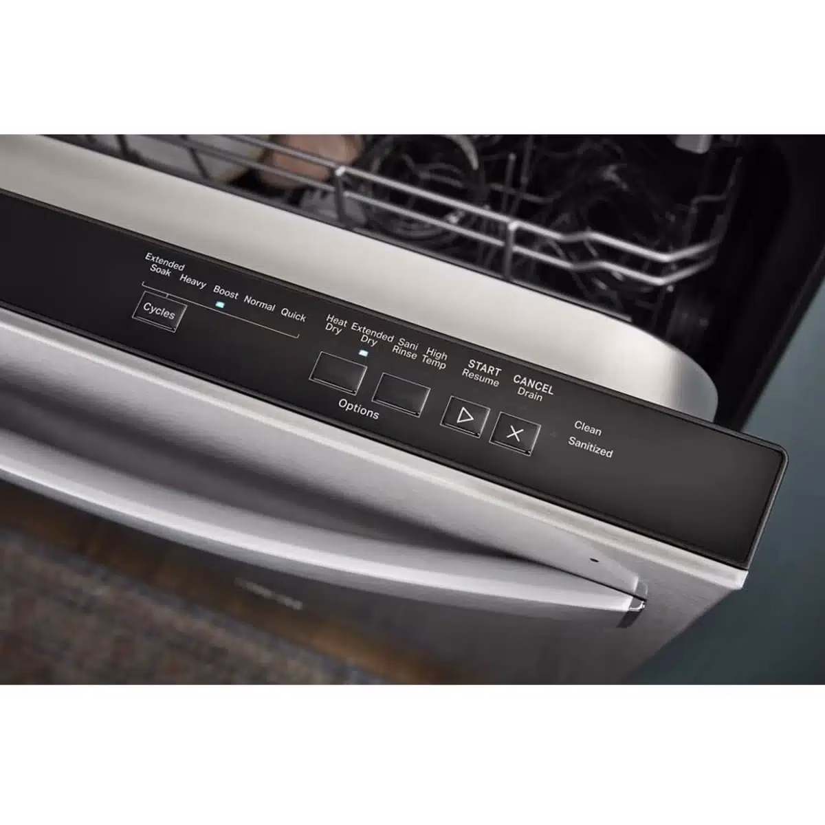Extra cycle time takes care of heavily soiled messes and hard-to-clean dishes.