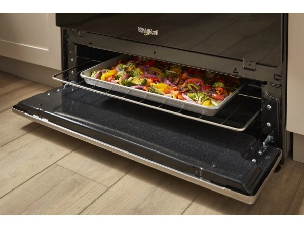 - Easily cook large meals with a 5.1 cu. ft. Capacity oven that includes 2-racks and a separate Broiler Drawer