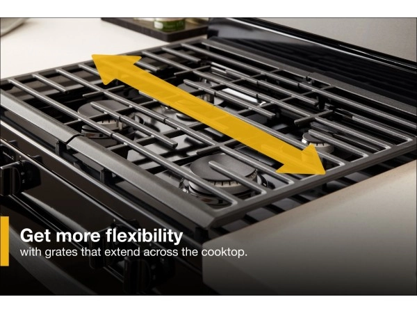 - Get more space to saute, boil and simmer with cast-iron grates that extend across the entire cooktop, giving you the flexibility to place pots and pans anywhere