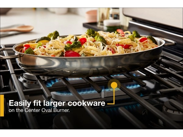 Get more space to sauté, boil and simmer with cast-iron grates that extend across the entire cooktop, giving you the flexibility to place pots and pans anywhere.