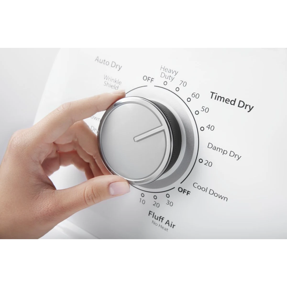 Care for the whole family’s fabrics with this large capacity top load dryer. Choose between the AutoDry system, which helps prevent over drying, or Timed Dry, which lets you manually control your drying schedule. Help keep wrinkles from setting in with the Wrinkle Shield option and easily transfer loads from the washer to this automatic dryer with a wide-opening hamper door.