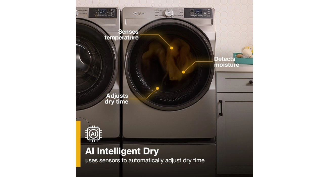 - AI Intelligent Dry technology uses three sensors to detect moisture and temperature, then automatically adjusts dry time to help prevent overdrying.