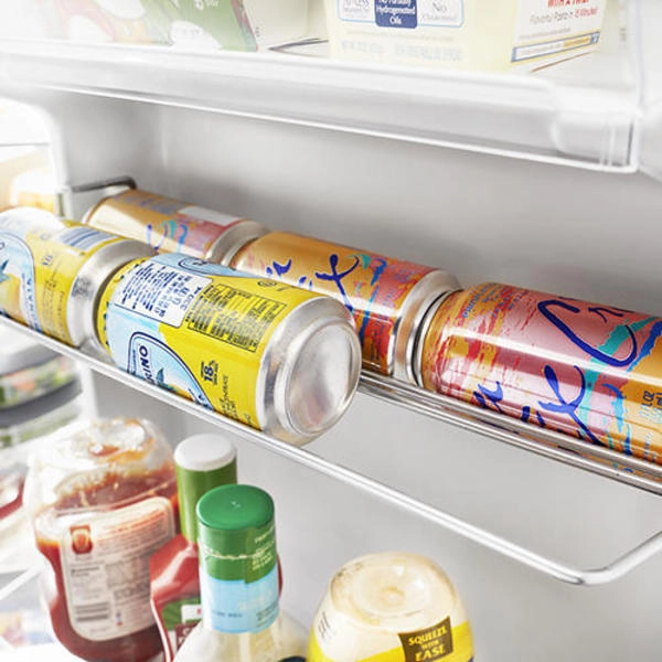 - Free up shelf space and get more flexibility using this in-door can caddy that holds either cans or bottles.