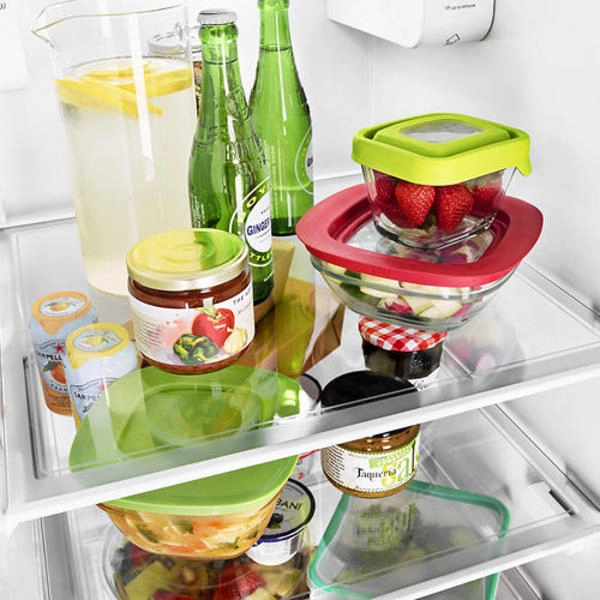 - Store more items on each shelf with wall-to-wall frameless glass shelves, which offer greater storage flexibility.