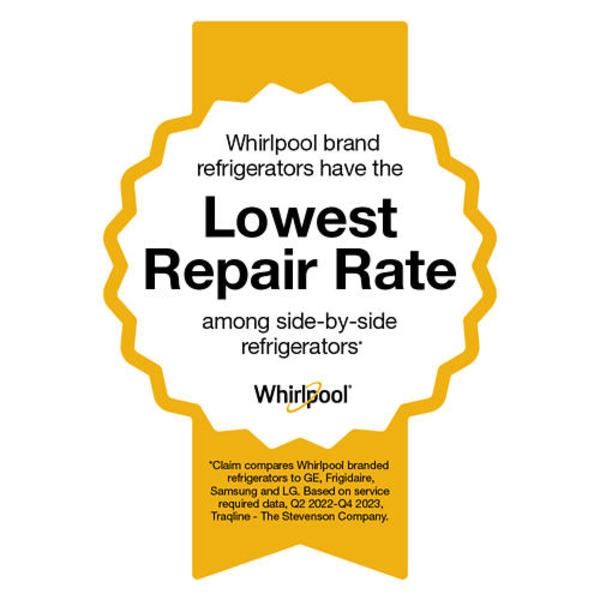 - Whirlpool brand refrigerators have the lowest repair rate among side by side refrigerators**Claim compares Whirlpool branded refrigerators to GE, Frigidaire, Samsung and LG.Based on service required data, Q2 2022-Q2 2023, Traqline – The Stevenson Company, 2023.